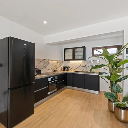 Z tohoto apartmánu je výhled na zahradu a je v něm kompletní kuchyně s mikrovlnnou troubou, chladničkou a toustovačem.